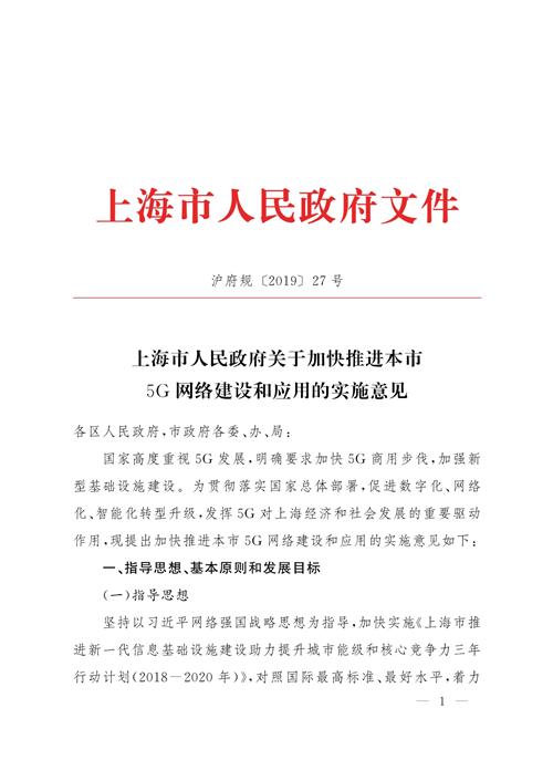 国家高度重视5G发展,明确要求加快5G商用步伐,加强新型基础设施建设。为贯彻落实国家总体部署,促进数字化、网络化、智能化转型升级,发挥5G对上海经济和社会发展的重要驱动作用,现提出加快推进本市5G网络建设和应用的实施意见如下: