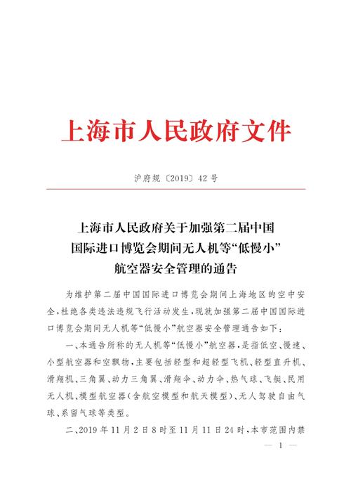 为维护第二届中国国际进口博览会期间上海地区的空中安全,杜绝各类违法违规飞行活动发生,现就加强第二届中国国际进口博览会期间无人机等“低慢小”航空器安全管理通告如下: