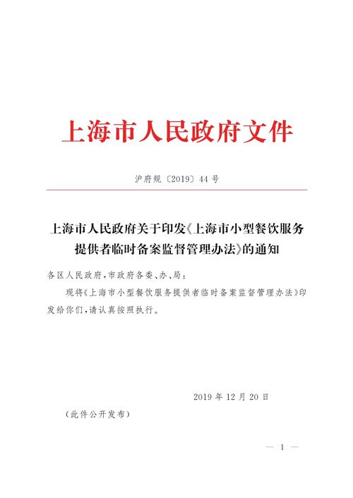上海市人民政府关于印发《上海市小型餐饮服务提供者临时备案监督管理办法》的通知
