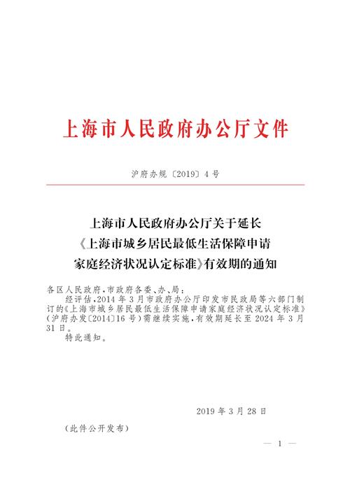 经评估,2014年3月市政府办公厅印发市民政局等六部门制订的《上海市城乡居民最低生活保障申请家庭经济状况认定标准》(沪府办发〔2014〕16号)需继续实施,有效期延长至2024年3月31日。