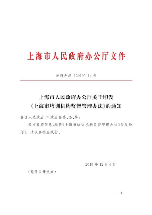 上海市人民政府办公厅关于印发《上海市培训机构监督管理办法》的通知