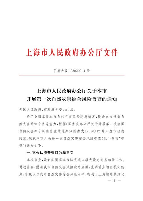 上海市人民政府办公厅关于本市开展第一次自然灾害综合风险普查的通知