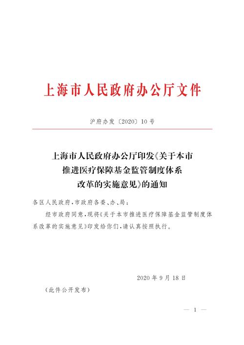 上海市人民政府办公厅印发《关于本市推进医疗保障基金监管制度体系改革的实施意见》的通知