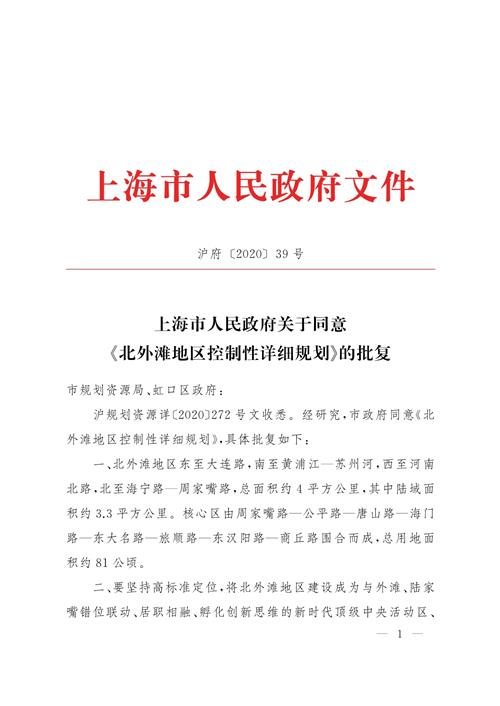 沪规划资源详〔2020〕272号文收悉。经研究,市政府同意《北外滩地区控制性详细规划》,具体批复如下: