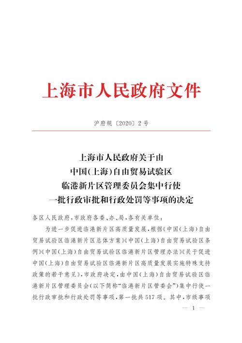 1.中国(上海)自由贸易试验区临港新片区管理委员会集中行使的市级行政审批和行政处罚等事项目录(第一批)