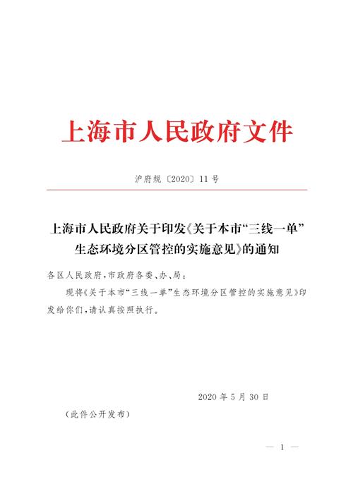 上海市人民政府关于印发《关于本市“三线一单”生态环境分区管控的实施意见》的通知