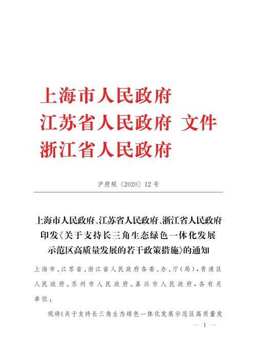 上海市人民政府、江苏省人民政府、浙江省人民政府印发《关于支持长三角生态绿色一体化发展示范区高质量发展的若干政策措施》的通知