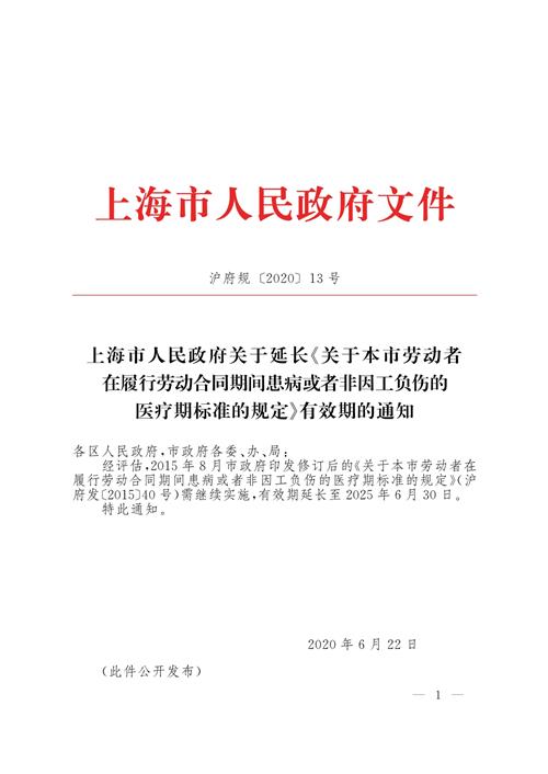 经评估,2015年8月市政府印发修订后的《关于本市劳动者在履行劳动合同期间患病或者非因工负伤的医疗期标准的规定》(沪府发〔2015〕40号)需继续实施,有效期延长至2025年6月30日。