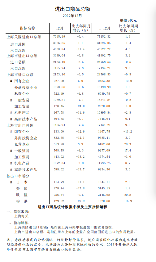 2022年12月份全市进出口商品总额