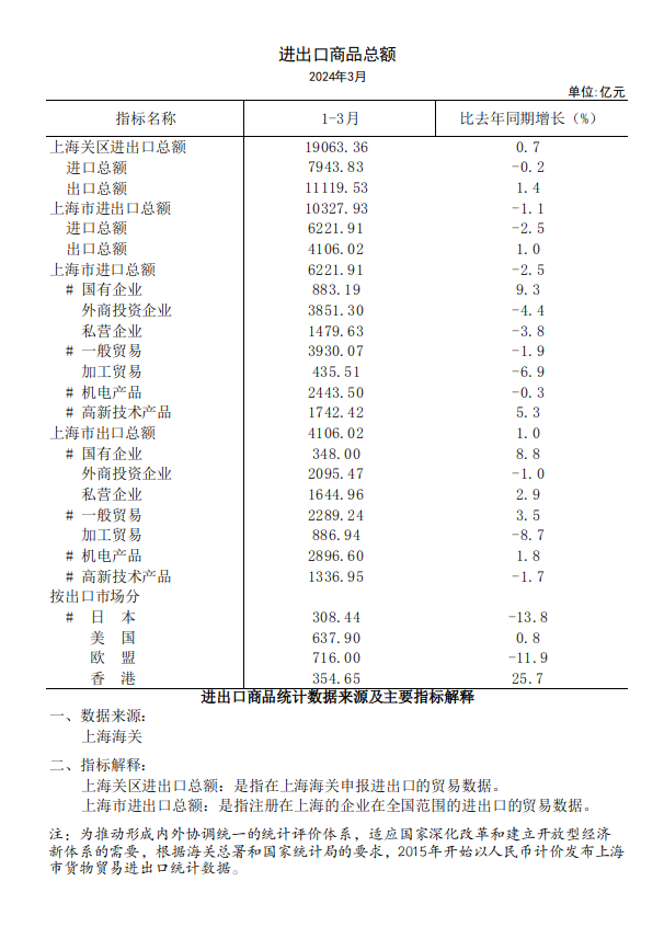 2024年3月全市进出口商品总额