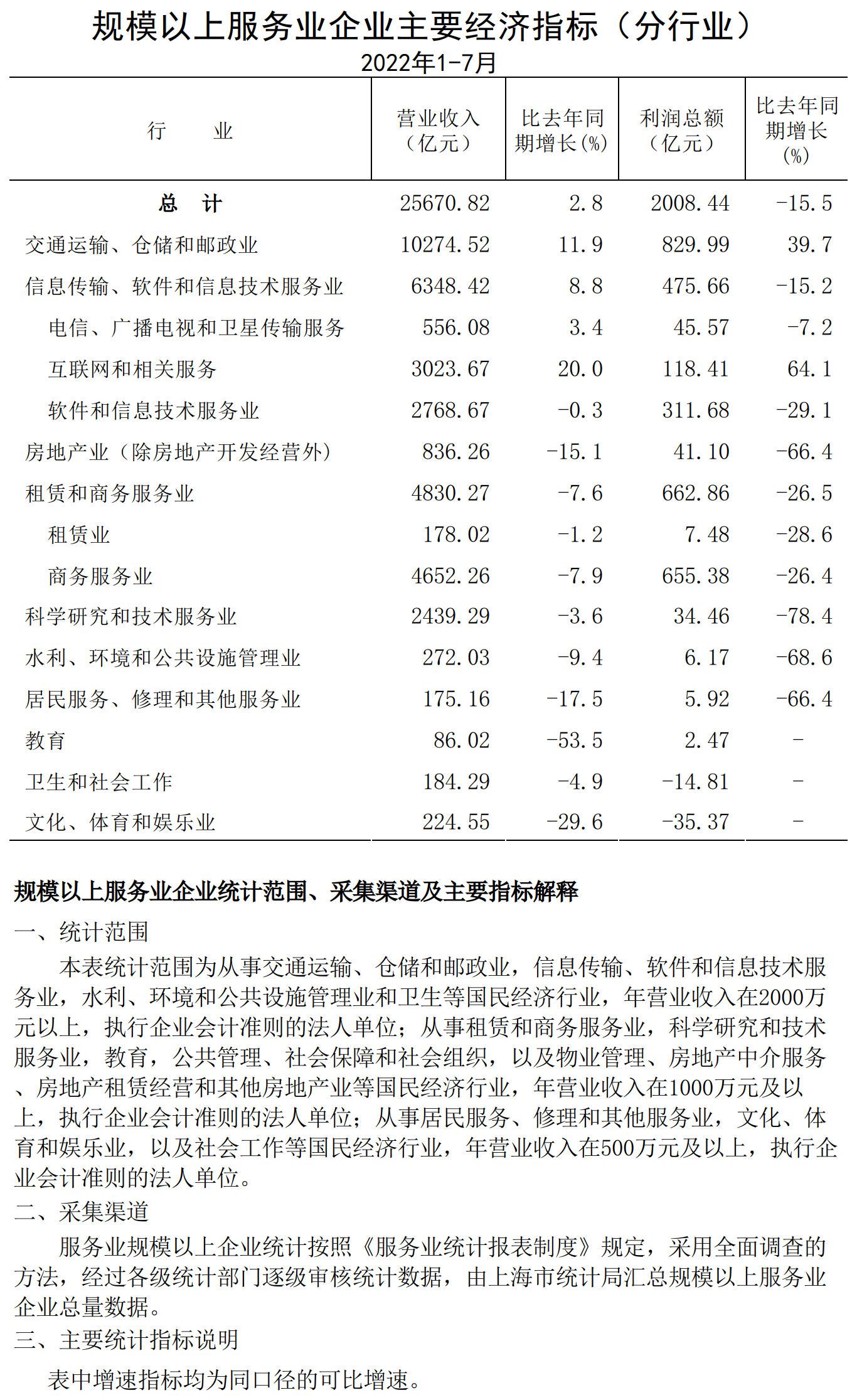 2022年1-7月规模以上服务业企业主要经济指标(分行业)