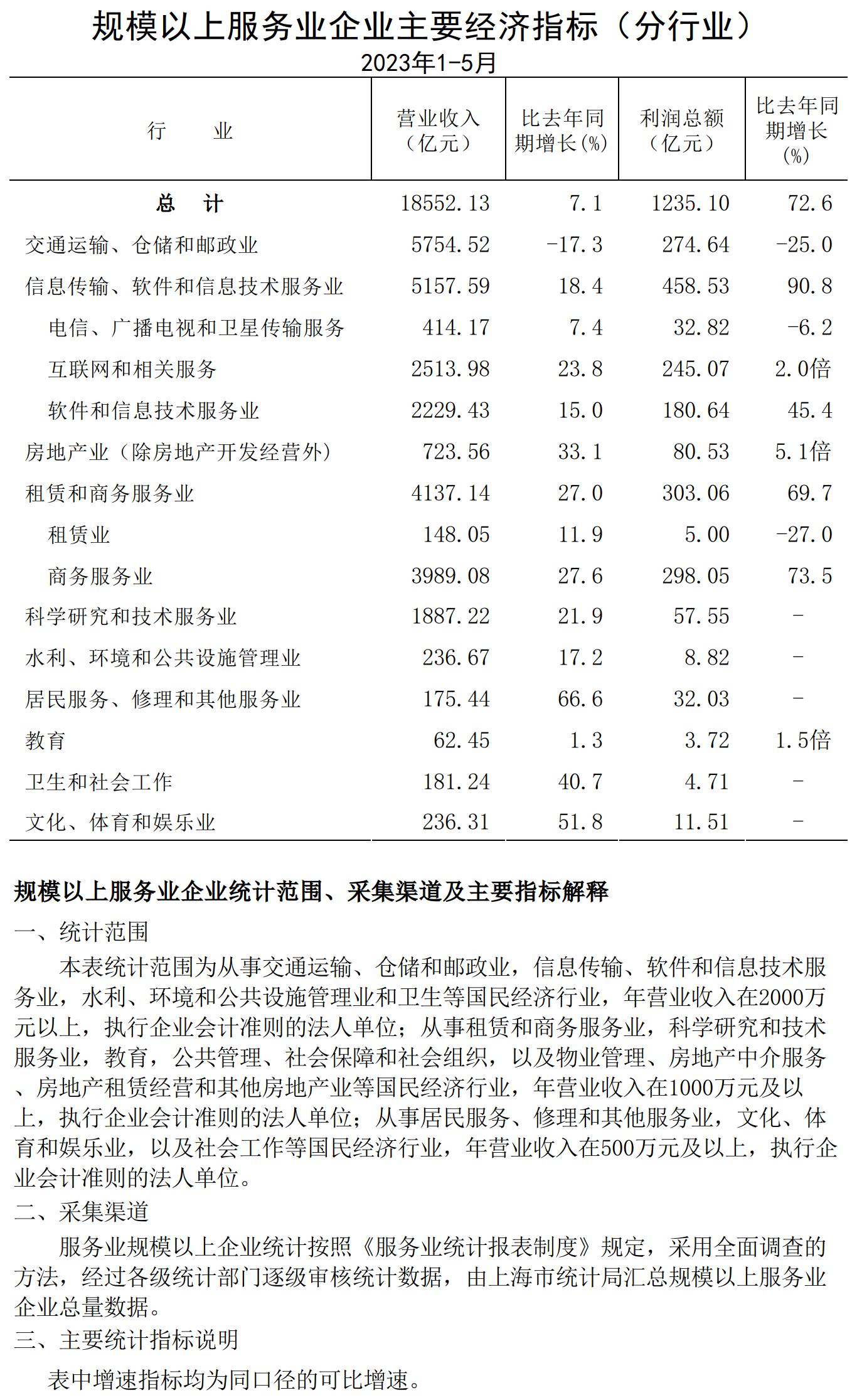 2023年1-5月规模以上服务业企业主要经济指标(分行业)
