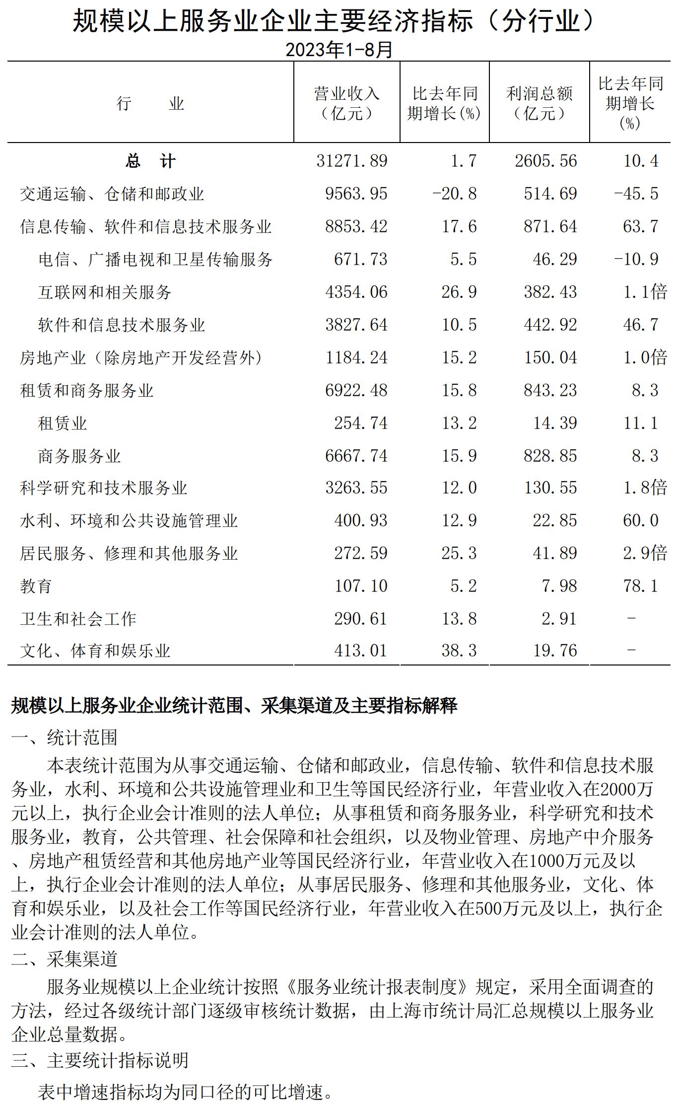 2023年1-8月规模以上服务业企业主要经济指标(分行业)