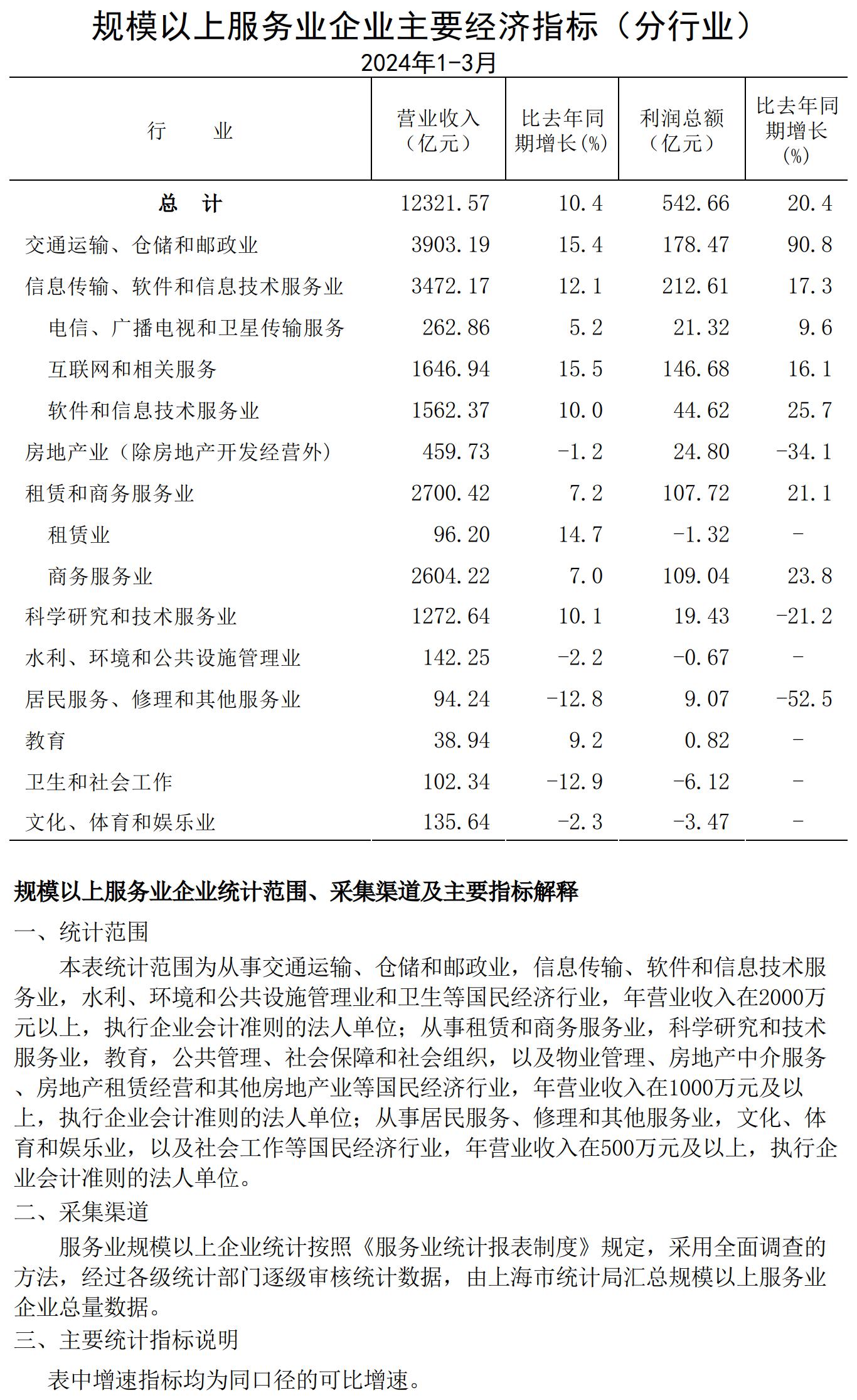 2024年1-3月规模以上服务业企业主要经济指标(分行业)
