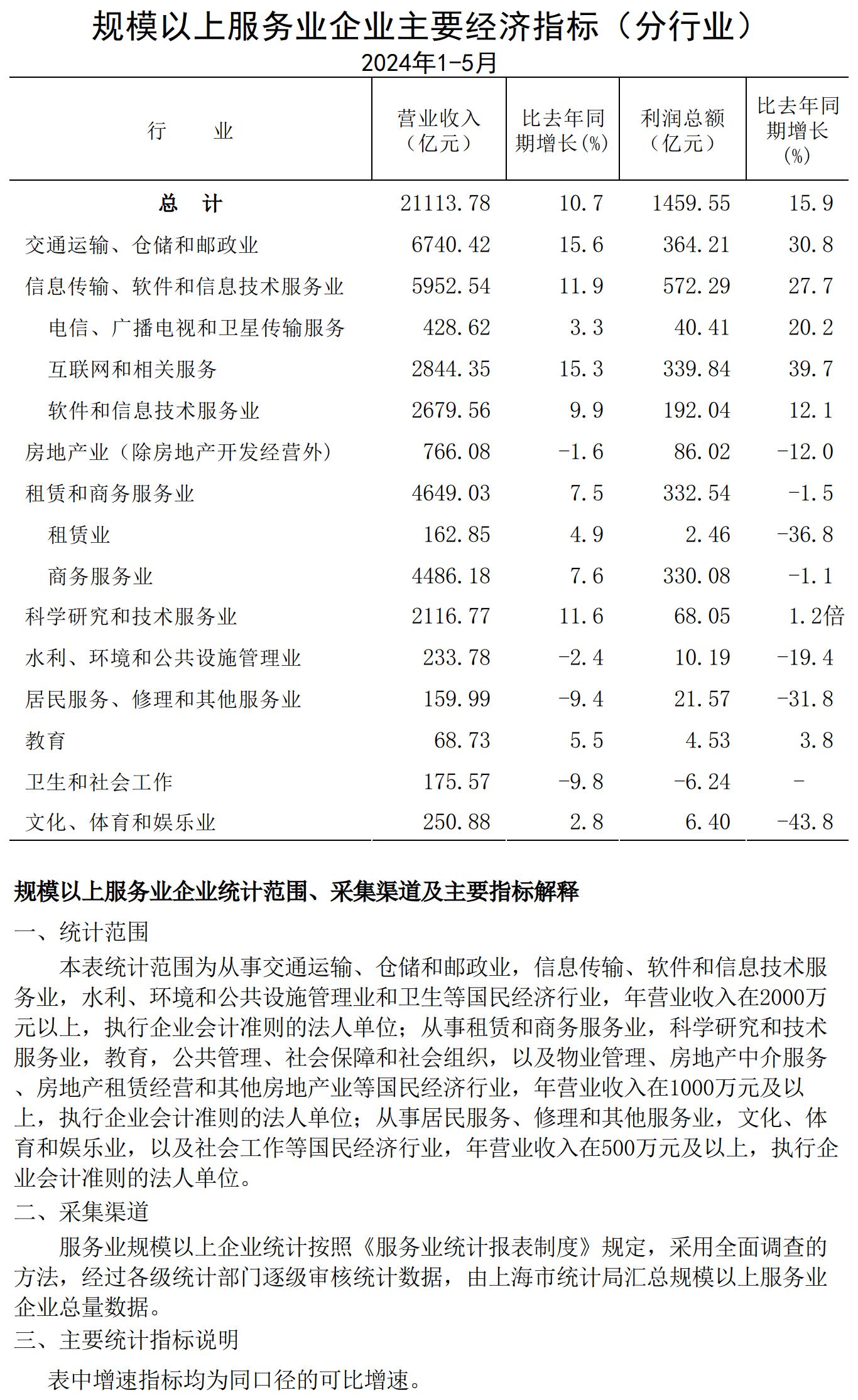2024年1-5月规模以上服务业企业主要经济指标(分行业)