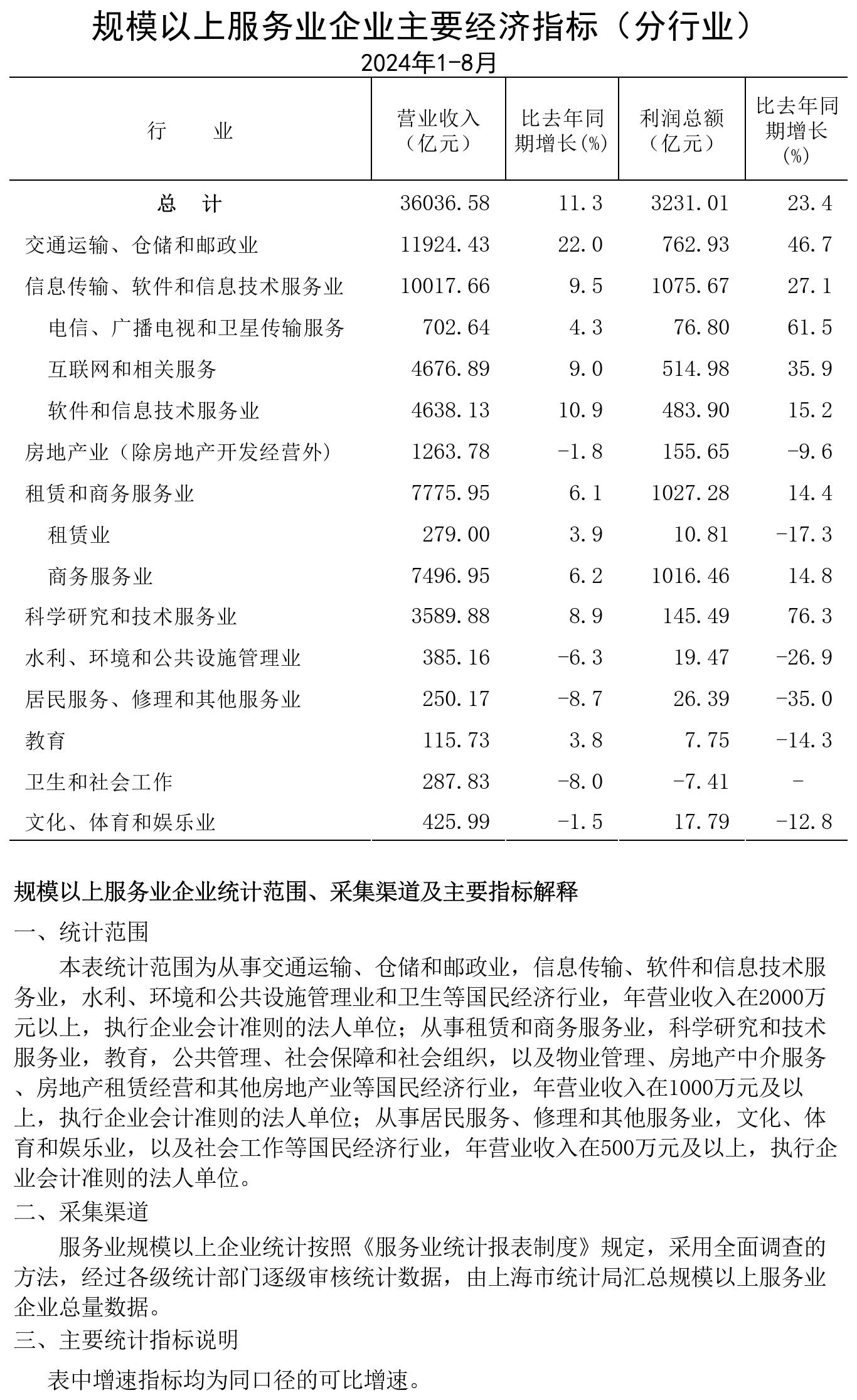 2024年1-8月规模以上服务业企业主要经济指标(分行业)