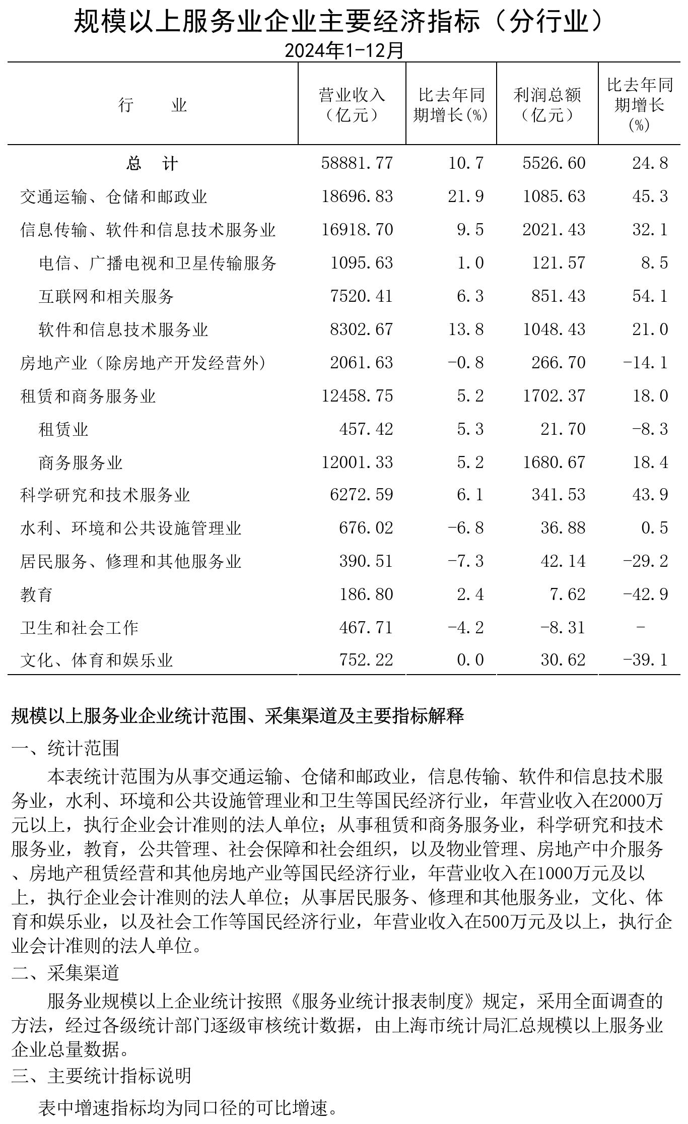 2024年1-12月规模以上服务业企业主要经济指标(分行业)