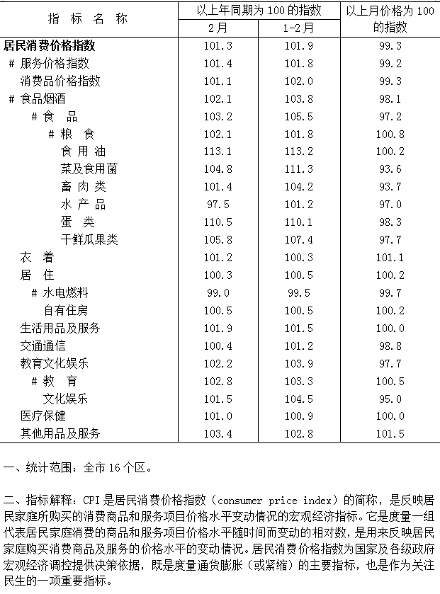 2023年2月居民消费价格指数