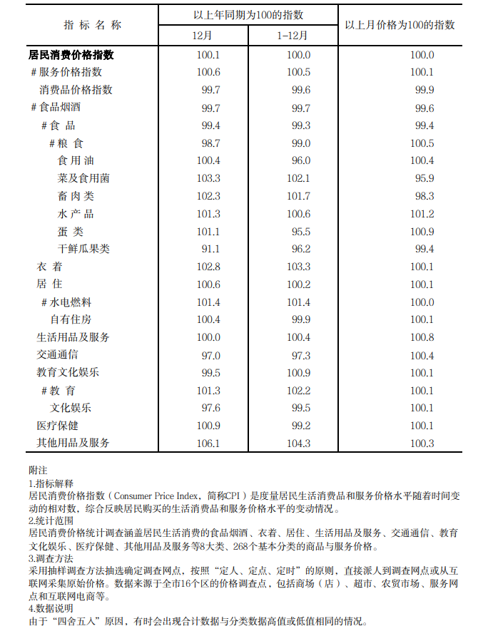 2024年12月居民消费价格