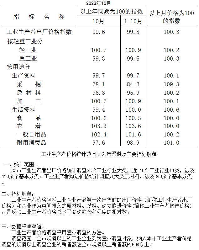 2023年10月工业生产者出厂价格指数