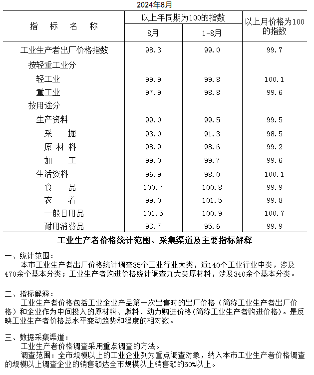 2024年8月工业生产者出厂价格指数