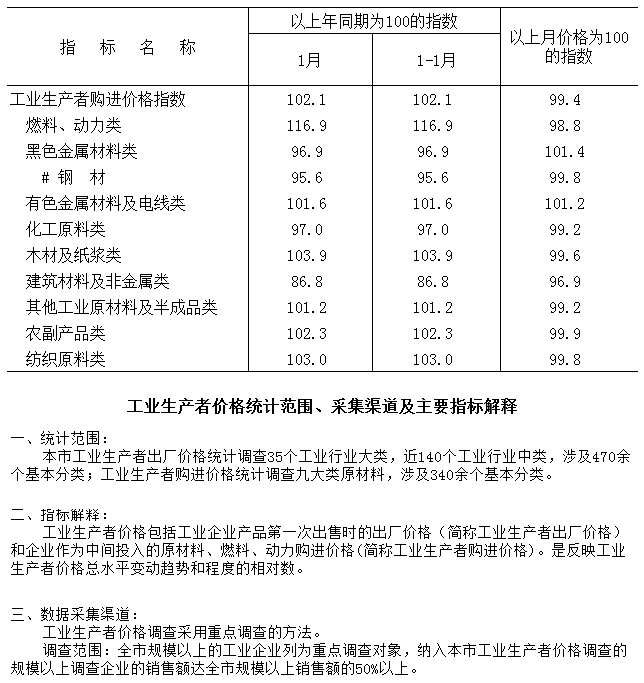 2023年1月工业生产者购进价格指数