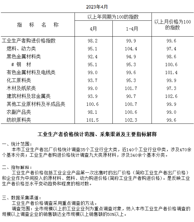 2023年4月工业生产者购进价格指数