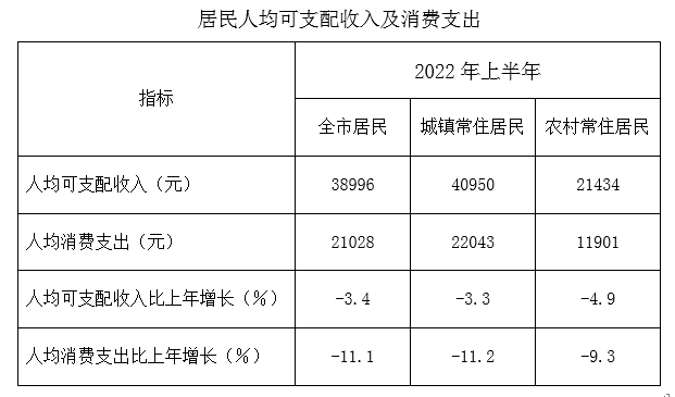 2022年上半年本市居民人均可支配收入及消费支出 2022-07-19 来源:市统计局
