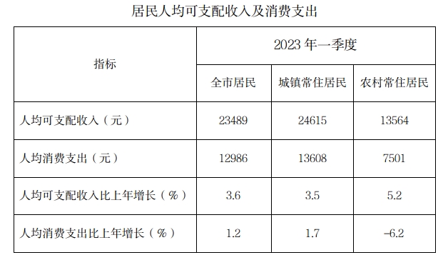 2023年一季度居民人均可支配收入及消费支出 2023-04-21 来源:市统计局