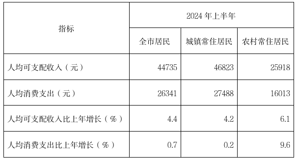 2024年上半年居民人均可支配收入及消费支出 2024-07-19 来源:市统计局