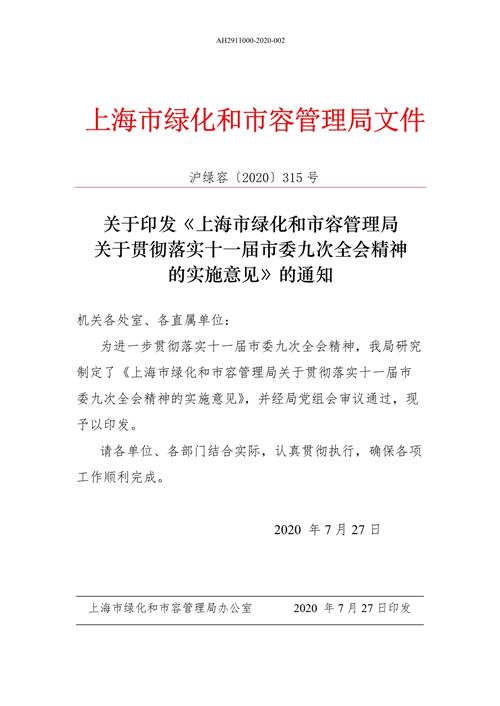 为进一步贯彻落实十一届市委九次全会精神,我局研究制定了《上海市绿化和市容管理局关于贯彻落实十一届市委九次全会精神的实施意见》,并经局党组会审议通过,现予以印发。