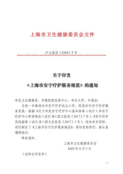 为进一步推进本市安宁疗护试点工作,促进本市安宁疗护服务发展,根据《关于印发安宁疗护中心基本标准(试行)和安宁疗护中心管理规范(试行)》(国卫医发〔2017〕7号)、《安宁疗护实践指南(试行)》(国卫办医发〔2017〕5号),结合本市实际,我们制定了《上海市安宁疗护服务规范》,现印发给你们,请认真遵照执行。