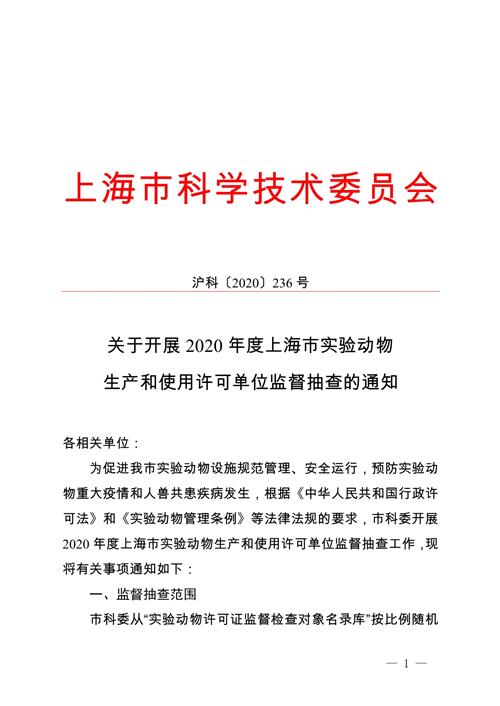 为促进我市实验动物设施规范管理、安全运行,预防实验动物重大疫情和人兽共患疾病发生,根据《中华人民共和国行政许可法》和《实验动物管理条例》等法律法规的要求,市科委开展2020年度上海市实验动物生产和使用许可单位监督抽查工作,现将有关事项通知如下: