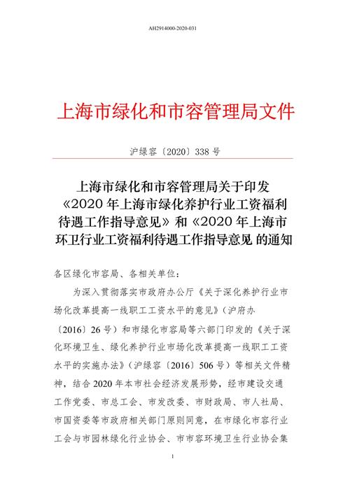 1.2020年上海市绿化养护行业工资福利待遇工作指导意见