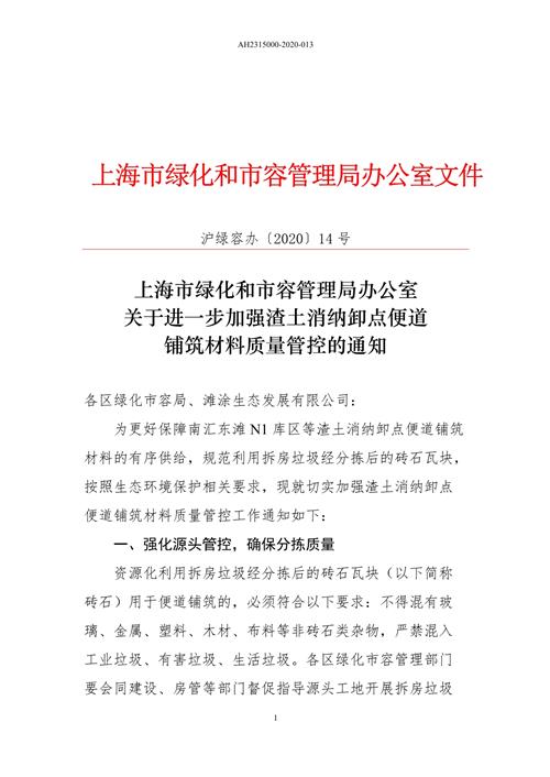 为更好保障南汇东滩N1库区等渣土消纳卸点便道铺筑材料的有序供给,规范利用拆房垃圾经分拣后的砖石瓦块,按照生态环境保护相关要求,现就切实加强渣土消纳卸点便道铺筑材料质量管控工作通知如下: