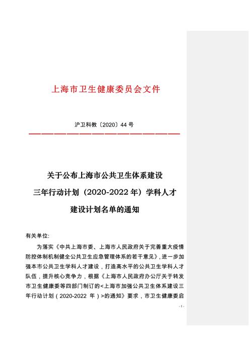 1.上海市公共卫生体系建设三年行动计划(2020-2022年)重点学科计划名单