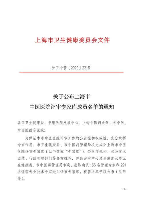 为保证本市中医医院评审工作的公正性和权威性,充分发挥专家作用,市卫生健康委、市中医药管理局决定成立上海市中医医院评审专家库(以下简称“专家库”)。经医疗机构、相关学术团体、行政管理部门等各方推荐,并经评审中心培训遴选及市卫生健康委、市中医药管理局审定,最终确认156名管理专家和291名资深专业技术专家进入评审专家库,现将名单予以公布(见附件)。