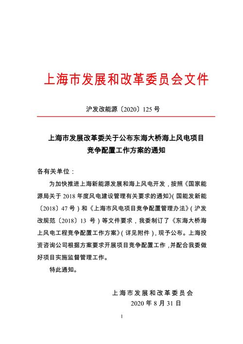 为加快推进上海新能源发展和海上风电开发,按照《国家能源局关于2018年度风电建设管理有关要求的通知》(国能发新能〔2018〕47号)和《上海市风电项目竞争配置管理办法》(沪发改规范〔2018〕13号)等文件要求,我委制订了《东海大桥海上风电工程竞争配置工作方案》(详见附件),现予公布。上海投资咨询公司根据方案要求开展项目竞争配置工作,并配合我委做好项目实施监督管理工作。