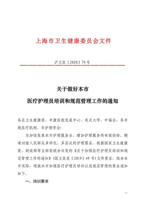 为加快发展本市护理服务业、增加护理服务的有效供给,精准对接人民群众多样化、多层次的护理需求,根据国家卫生健康委、财政部等五部委联合印发的《关于加强医疗护理员培训和规范管理工作的通知》(国卫医发〔2019〕49号)文件要求,结合本市实际,现就本市加强医疗护理员培训以及规范管理的要求通知如下。