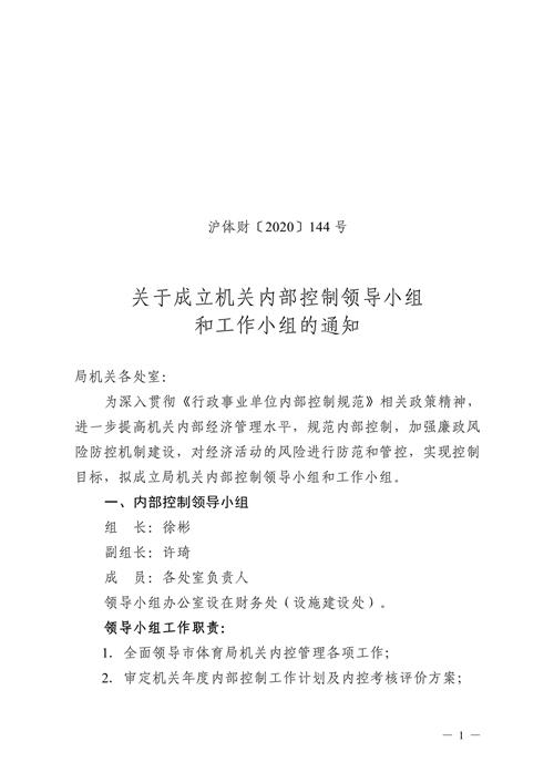 为深入贯彻《行政事业单位内部控制规范》相关政策精神,进一步提高机关内部经济管理水平,规范内部控制,加强廉政风险防控机制建设,对经济活动的风险进行防范和管控,实现控制目标,拟成立局机关内部控制领导小组和工作小组。