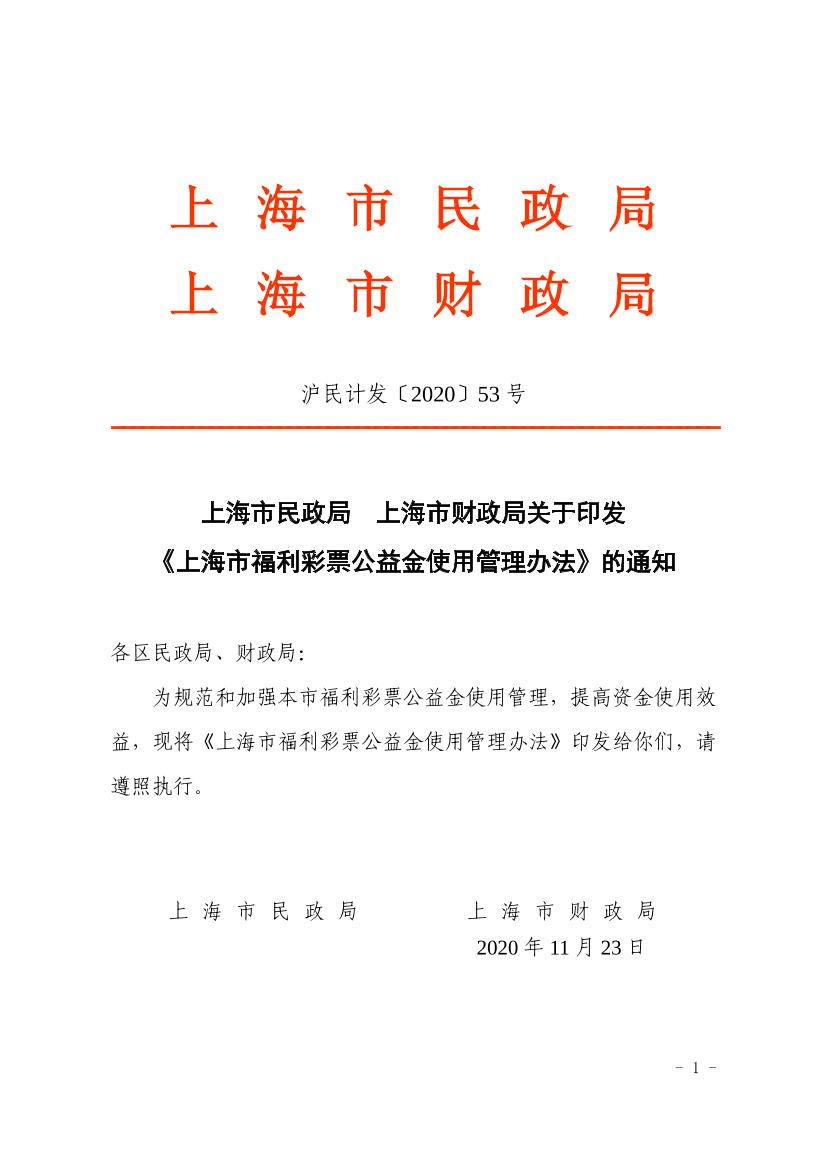 为规范和加强本市福利彩票公益金使用管理,提高资金使用效益,现将《上海市福利彩票公益金使用管理办法》印发给你们,请遵照执行。