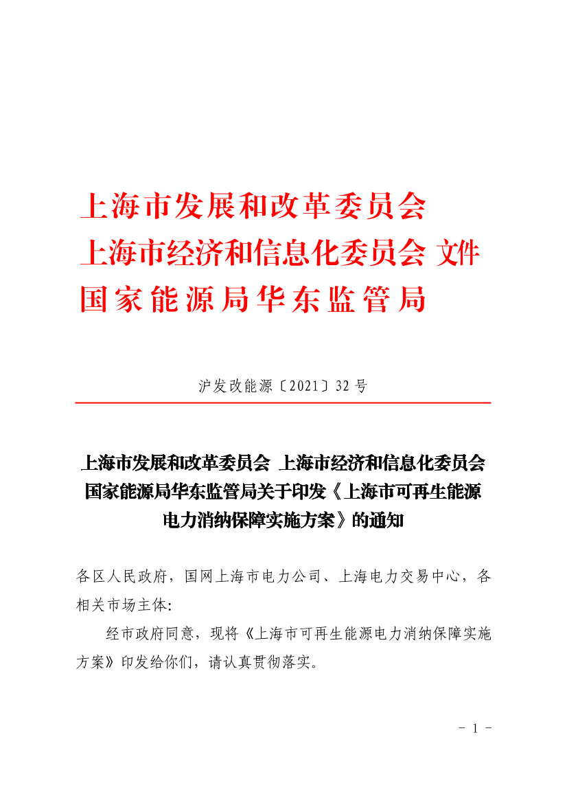 经市政府同意,现将《上海市可再生能源电力消纳保障实施方案》印发给你们,请认真贯彻落实。