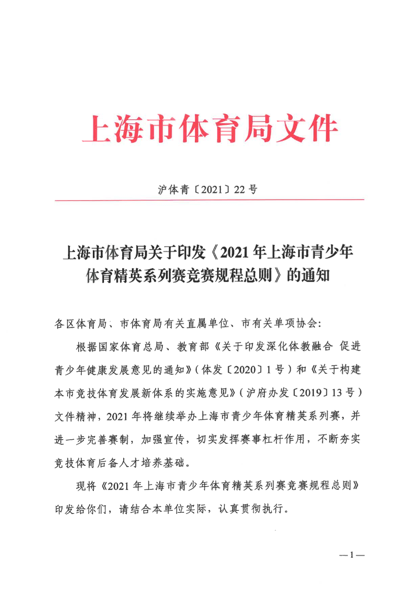 2021年上海市青少年体育精英系列赛竞赛规程总则