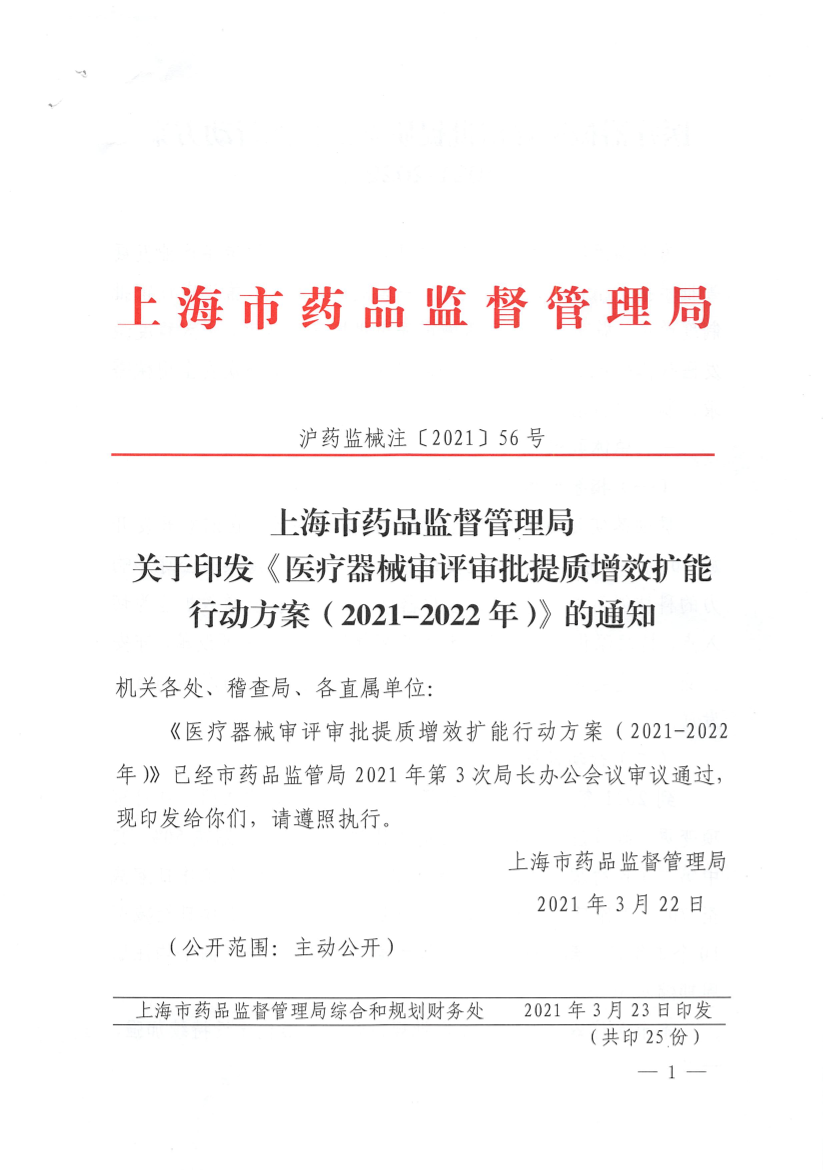 医疗器械审评审批提质增效扩能行动方案(2021-2022年)