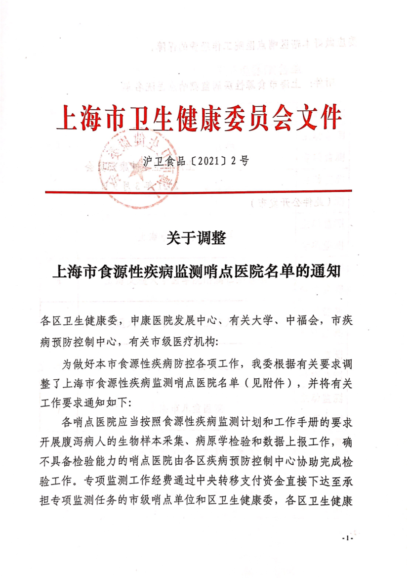 为做好本市食源性疾病防控各项工作,我委根据有关要求调整了上海市食源性疾病监测哨点医院名单(见附件),并将有关工作要求通知如下: