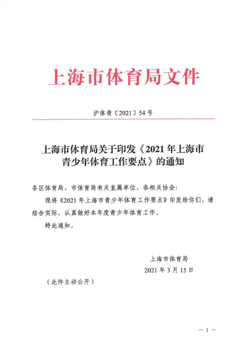 现将《2021年上海市青少年体育工作要点》印发给你们,请结合实际,认真做好本年度青少年体育工作。