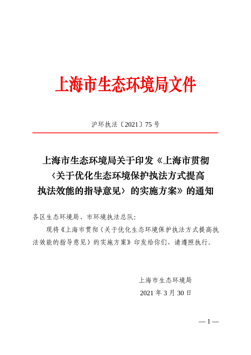 上海市贯彻《关于优化生态环境保护执法方式提高执法效能的指导意见》的实施方案