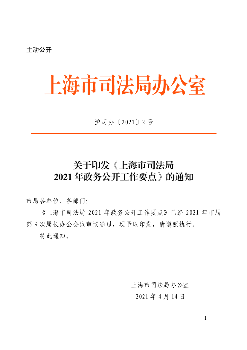 上海市司法局2021年政务公开工作要点