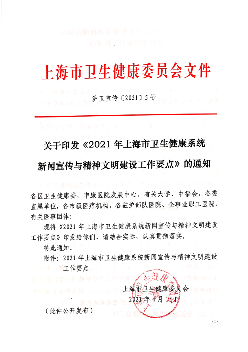 附件:2021年上海市卫生健康系统新闻宣传与精神文明建设工作要点