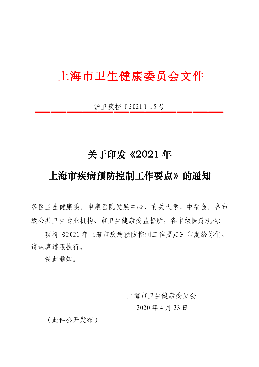 现将《2021年上海市疾病预防控制工作要点》印发给你们,请认真遵照执行。